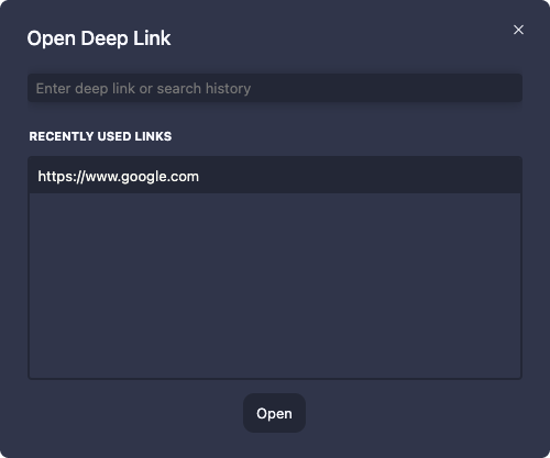 - Open Deep Link - allows opening deep links and website URLs on the device. Website URLs will open in the default device browser.